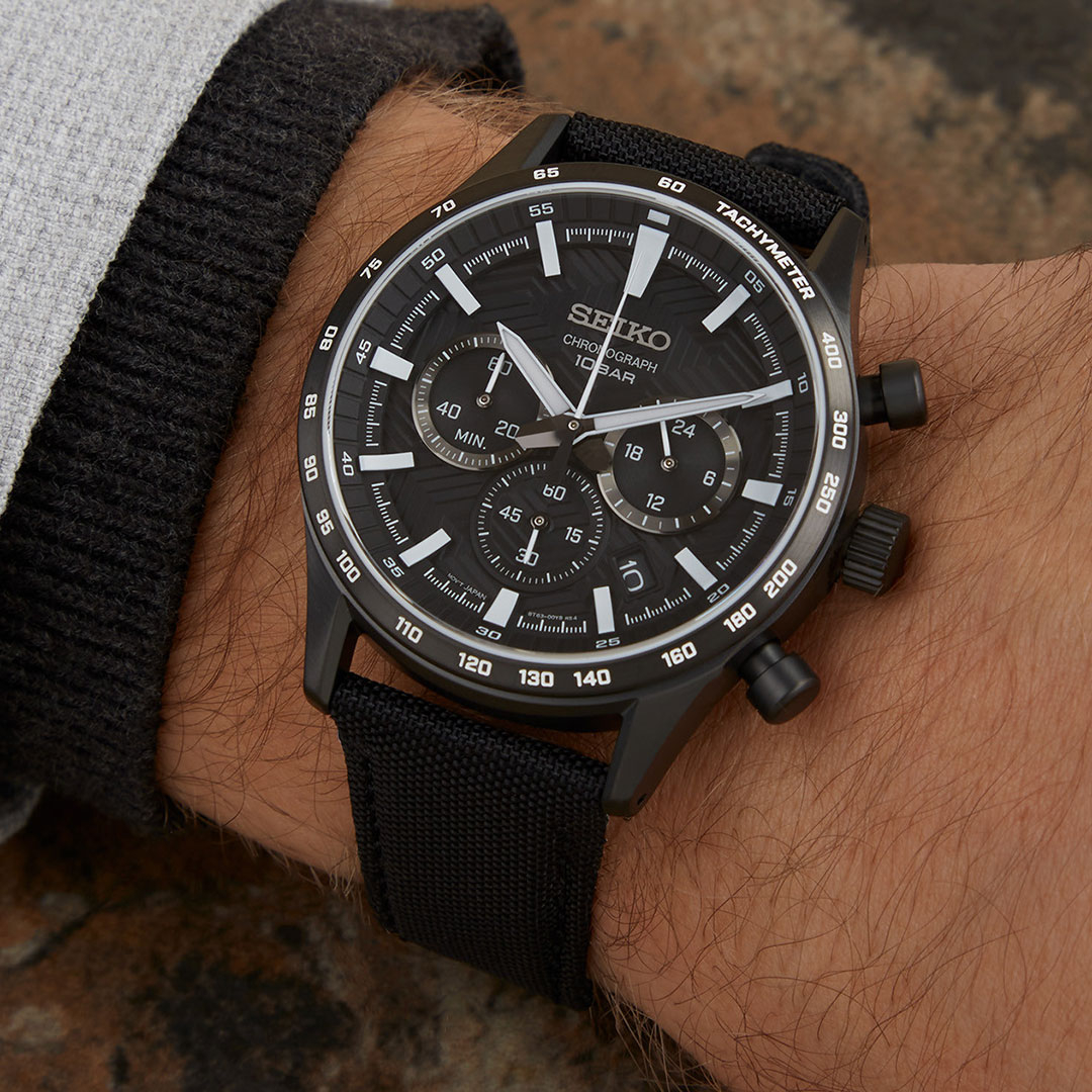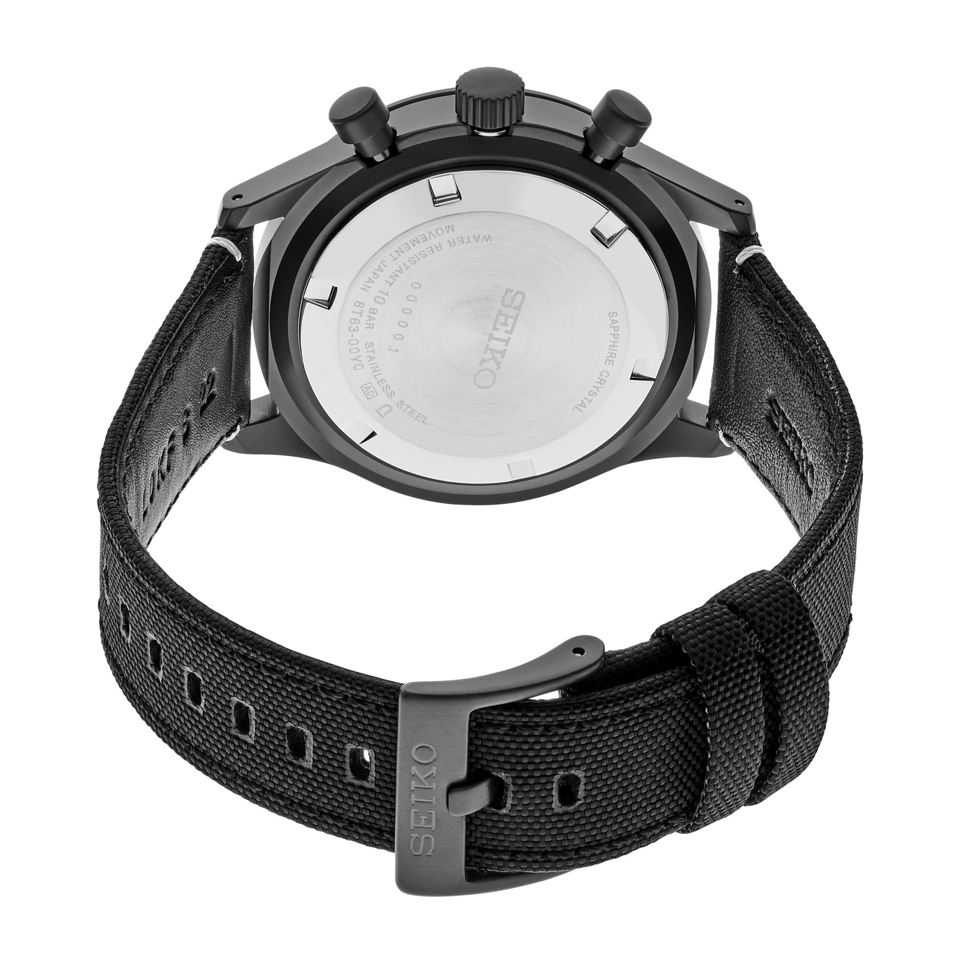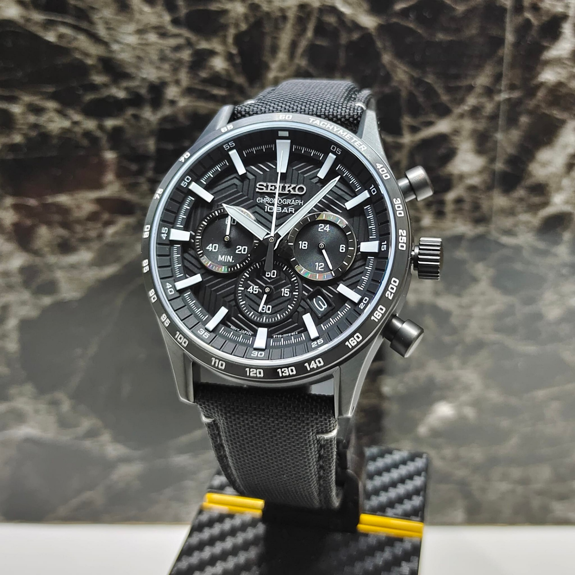این طرح از برند ساعت سیکو با طراحی و رنگ خاص خود برای تیپهای نسبتا اسپرت بسیار مناسب میباشد. بند برزنتی و بدنه ی این ساعت سیکو از جنس استیل است که از رنگهای مشکی و سفید در آن استفاده شده است. از ویژگیهای منحصر به فرد این ساعت میتوان به طراحی بسیار شیک و اسپرت ساعت در عین مجلسی بودنش اشاره کرد. این ساعت سیکو چند موتوره یا کرنوگراف بوده و عقربه های کوچک آن کرنومتر هستند و همچنین دارای نمایشگر روزهای ماه و وضعیت 24ساعته نیز هست. اعداد دور بدنه این ساعت سرعت سنج (تاچمتر) هستند که برای محاسبه و سنجش سرعت استفاده می شوند.