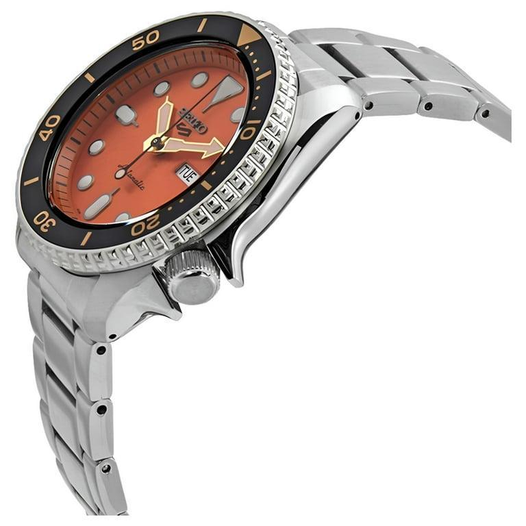 مدلی از سری Seiko 5 Sports Automatic با طراحی اسپرت و الهامگرفته از ساعتهای غواصی. این مدل با صفحه نارنجی خاص، عقربههای شبتاب، قاب استیل و موتور مکانیکی خودکار، ترکیبی از استایل روزمره و قابلیتهای مقاوم در برابر آب رو ارائه میده.