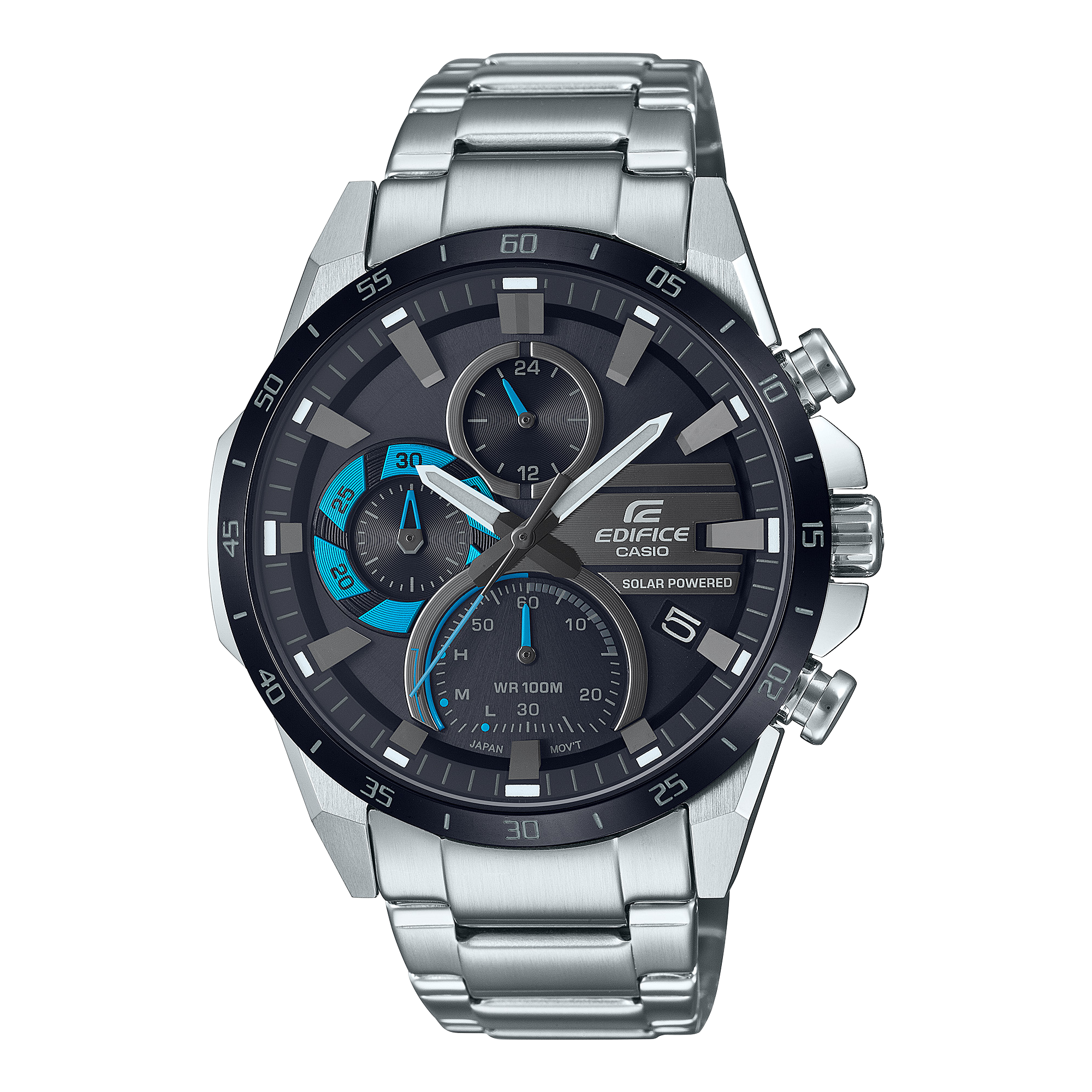 ساعت کاسیو مدل EQS-940DB-1B از سری Edifice با طراحی الهام‌گرفته از موتوراسپرت‌ها، انتخابی ایده‌آل برای مردان فعال و علاقه‌مند به تکنولوژی است. این مدل با بدنه استیل ضدزنگ، بند استیل ضدزنگ با قفل سه‌تایی، صفحه نمایش ترکیبی آنالوگ-دیجیتال، و رنگ‌بندی مشکی با جزئیات آبی، امکانات پیشرفته‌ای چون تکنولوژی شارژ خورشیدی (Tough Solar)، کرنوگراف دقیق، مقاومت در برابر آب تا ۱۰۰ متر و نمایشگر سطح باتری را ارائه می‌دهد.