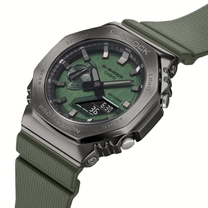 ساعت کاسیو مدل GM-2100B-3A از سری محبوب G-SHOCK، با طراحی هشت‌ضلعی و قاب فلزی مشکی-سبز، ترکیبی از استحکام و ظاهری مدرن ارائه می‌دهد. این مدل با قاب استیل ضدزنگ، ساختار مقاوم در برابر ضربه، مقاومت 200 متری در برابر آب و امکانات آنالوگ-دیجیتال، انتخابی عالی برای استفاده روزمره، استایل خیابانی و فعالیت‌های ورزشی است. طراحی باریک‌تر نسبت به بسیاری از مدل‌های جی‌شاک، باعث شده این ساعت همزمان شیک و کاربردی باشد.