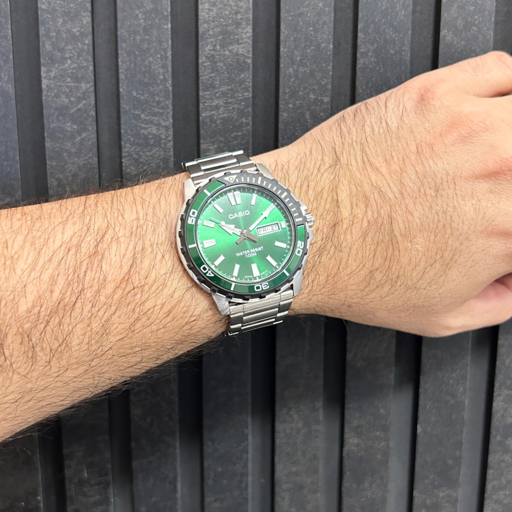 ساعت مردانه عقربهای کاسیو مدل MTD-125D-3AVDF از سری اسپرت و دریایی کاسیو، با طراحی جذاب و عملکرد قابلاعتماد، انتخابی حرفهای برای علاقهمندان به ورزشهای آبی و استایلهای روزمره است. صفحه سبز با جزئیات سفید، قاب چرخشی یکجهته و نمایشگر روز و تاریخ، این مدل را به گزینهای کاربردی و شیک تبدیل کرده است. نمایشگر روز به دو زبان انگلیسی و اسپانیایی قابل تنظیم است.