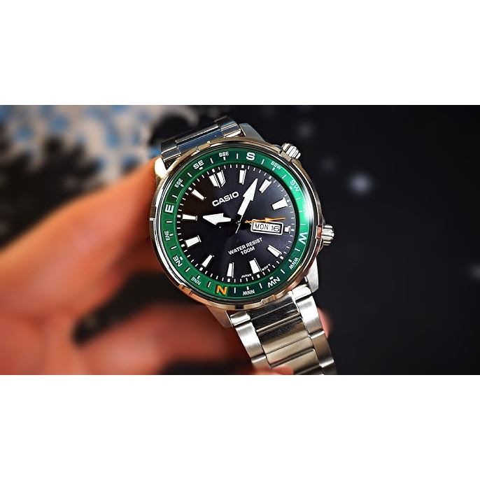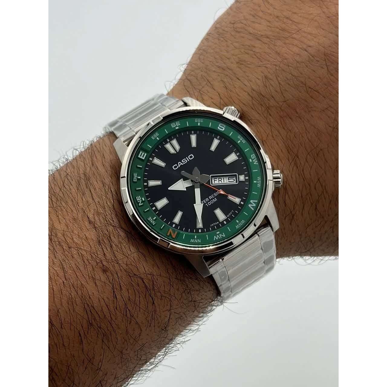 ساعت مردانه عقربهای کاسیو مدل MTD-130D-1A3VDF از سری اسپرت و دریایی کاسیو، با طراحی خاص و قاب چرخشی قطبنما، انتخابی عالی برای علاقهمندان به طبیعتگردی، کمپینگ و استایلهای روزمره است. صفحه مشکی با جزئیات سبز فسفری، بند استیل نقرهای و قاب چرخشی جهتیاب، این مدل را به گزینهای کاربردی و خاص تبدیل کرده است. نمایشگر روز و تاریخ نیز به دو زبان انگلیسی و اسپانیایی قابل تنظیم است.