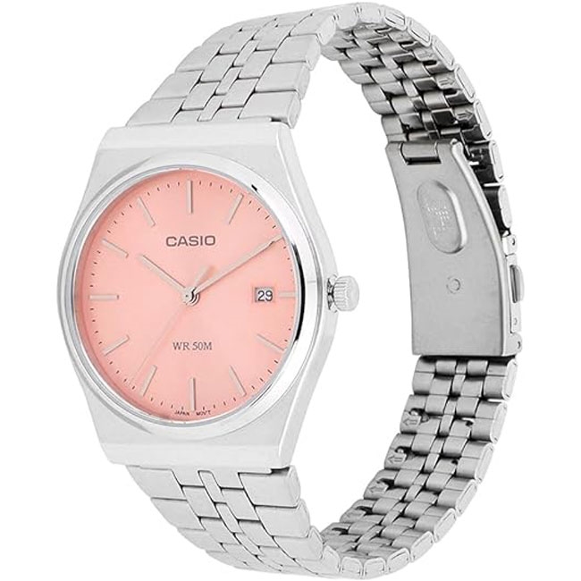 ساعت عقربهای کاسیو مدل MTP-B145D-4AVDF با طراحی الهامگرفته از دهه ۱۹۸۰، صفحه قرمز مات و بند استیل نقرهای، انتخابی جسورانه و شیک برای استایلهای روزمره و کلاسیک است. طراحی مینیمال صفحه بدون اعداد و با عقربههای ساده، جلوهای مدرن و خوانا دارد. این مدل با مقاومت ۵۰ متر در برابر آب و وزن سبک، برای استفاده روزانه بسیار مناسب است.