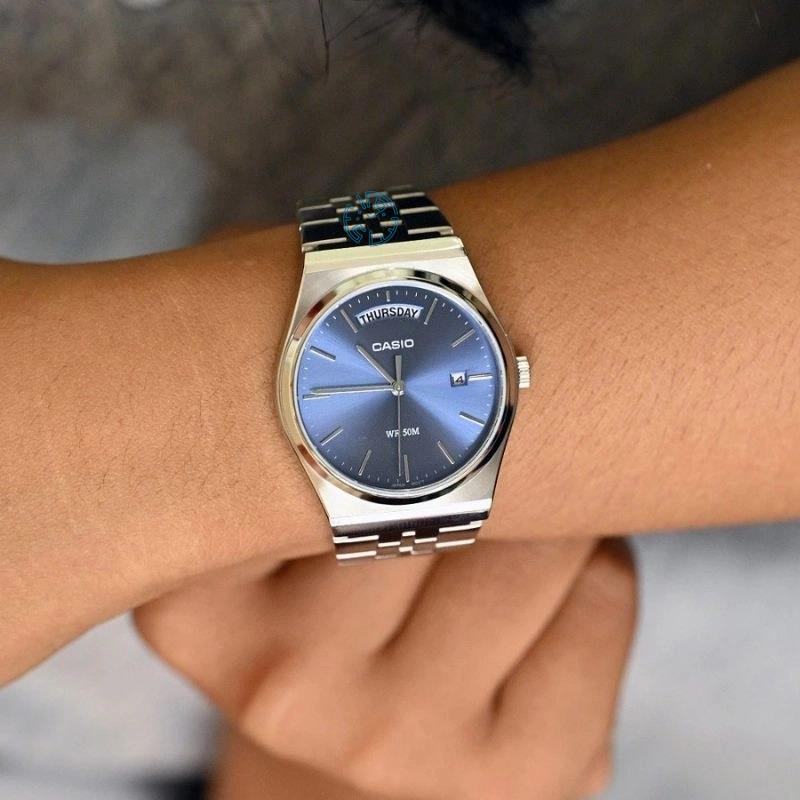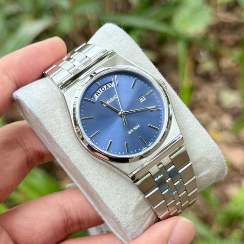 ساعت کاسیو مدل MTP-B146D-2AVDF با صفحه آبی مات و طراحی مینیمال، انتخابی شیک و آرام برای استایل‌های روزمره و کلاسیک است. نمایش روز در موقعیت ۱۲ و بند استیل نقره‌ای، ترکیبی از سادگی و عملکرد را ارائه می‌دهد. مناسب برای استفاده روزانه با مقاومت در برابر آب تا ۵۰ متر.