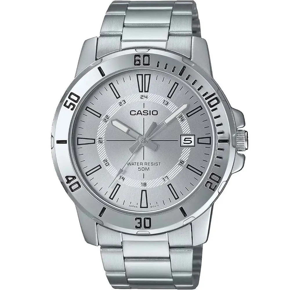 ساعت عقربهای کاسیو مدل MTP-VD01D-7CVUDF با طراحی اسپرت و صفحه سفید مات، انتخابی ساده و کاربردی برای استفاده روزمره و محیطهای کاری است. قاب فلزی ضخیم و بند استیل نقرهای، ظاهر مقاوم و مردانهای به ساعت بخشیدهاند. پنجره تاریخ در موقعیت ۳ و عقربههای خوانا، استفاده از ساعت را آسان و دقیق میکند. مقاومت ۵۰ متر در برابر آب، این مدل را برای فعالیتهای روزانه مناسب کرده است.