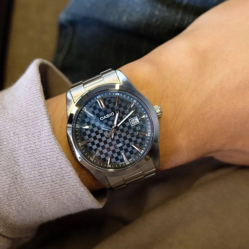ساعت عقربهای کاسیو مدل MTP-VD03D-2A2UDF با طراحی اسپرت و رنگ آبی جذاب، انتخابی مدرن و روزمره برای آقایانی است که به استایلهای ساده اما چشمنواز علاقه دارند. صفحه آبی با عقربههای نقرهای و پنجره تاریخ در موقعیت ۳، خوانایی خوبی را در کنار عملکرد کاربردی فراهم میکند. قاب و بند استیل نقرهای با پرداخت مات و براق، جلوهای حرفهای و مقاوم دارد. مقاومت ۵۰ متر در برابر آب، استفاده روزمره را بدون نگرانی از تماس با آب ممکن میسازد.