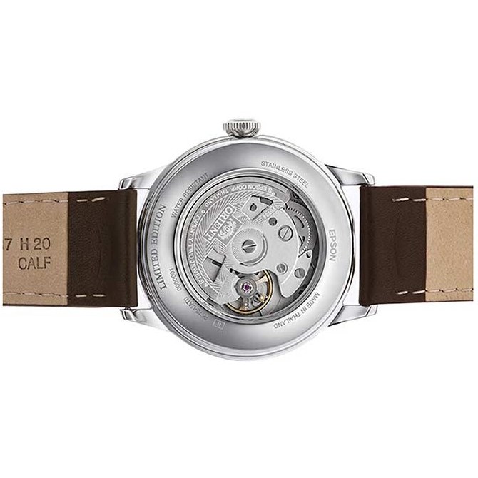 این ساعت از مجموعه Bambino برند اورینت ژاپن، با طراحی کلاسیک و محدود (۲۵۰۰ عدد) و صفحه مسی منحصر به فرد، انتخابی ایده‌آل برای کلکسیونرها و علاقه‌مندان به ساعت‌های خاص است. صفحه مسی با نشان عابراق و عقربه‌های پولیش دوفین شده، زیبایی چشمگیری ایجاد می‌کند، در حالی که بند چرم طبیعی قهوه‌ای با دوخت مطابق، راحتی و دوام را تضمین می‌کند. موتور اتوماتیک ژاپنی کالیبر F6724 با قابلیت کوک خودکار و دستی، قدرت ذخیره ۵۰ ساعته و دقت بین +۲۵ تا -۱۵ ثانیه در روز را ارائه می‌دهد. این ساعت با طراحی vintage و ابعاد جمع و جور ۳۸.۴ میلی‌متری، برای مچ‌های کوچک و متوسط ایده‌آل است و برای مناسبت‌های رسمی و استفاده روزمره مناسب می‌باشد.