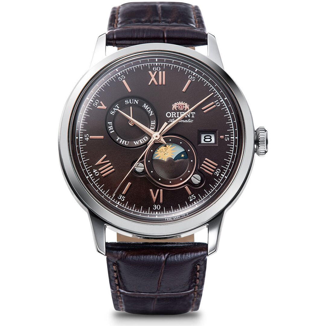 این ساعت از مجموعه Bambino Version 9 برند اورینت ژاپن، با طراحی کلاسیک و مدرن و نشانگر منحصر به فرد خورشید و ماه، انتخابی ایدهآل برای مردانی است که به دنبال ترکیبی از اصالت، دقت و زیبایی هستند. صفحه قهوهای با اثر سانبرست و نشانگرهای نقرهای، زیبایی چشمگیری ایجاد میکند، در حالی که بند چرم طبیعی با سگک، راحتی و دوام را تضمین میکند. موتور اتوماتیک ژاپنی کالیبر F6B24 با قابلیت کوک خودکار و دستی، قدرت ذخیره ۴۰ ساعته و دقت بین +۲۵ تا -۱۵ ثانیه در روز را ارائه میدهد. این ساعت با طراحی خاص خود، برای مناسبتهای رسمی و استفاده روزمره ایدهآل است. اورینت با بیش از نیم قرن تجربه در تولید ساعتهای مکانیکی، تضمینی بر کیفیت و اصالت این محصول است.