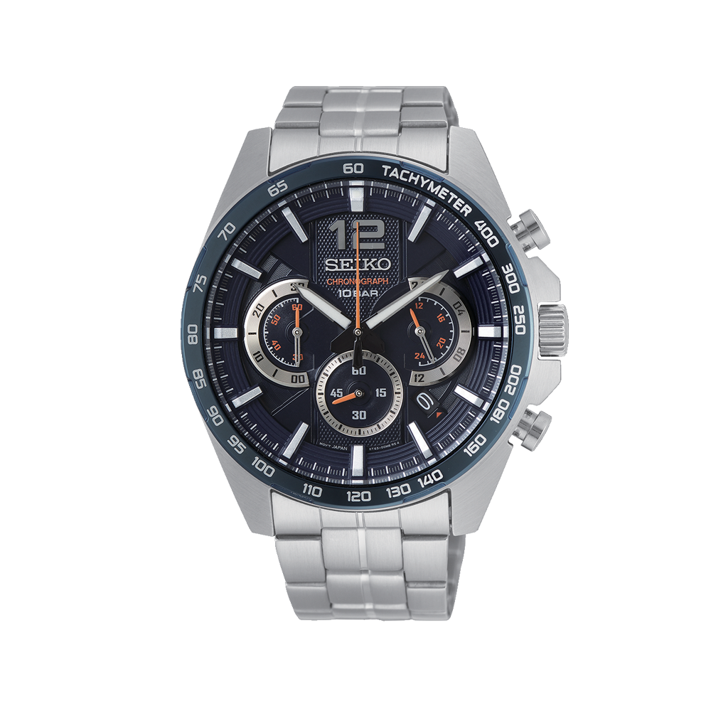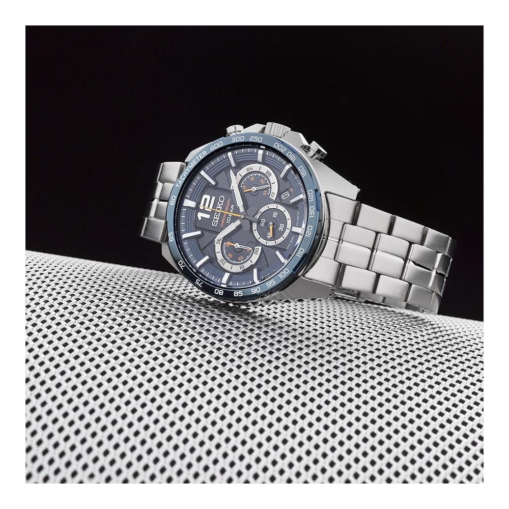 این مدل از سری Seiko Chronograph هست و طراحی اسپرت-رسمی داره. با ترکیب موتور کوارتز دقیق، قابلیت کرنوگراف و مقاومت مناسب در برابر آب، برای استفاده روزمره و حتی موقعیتهای رسمی انتخاب مناسبیه.