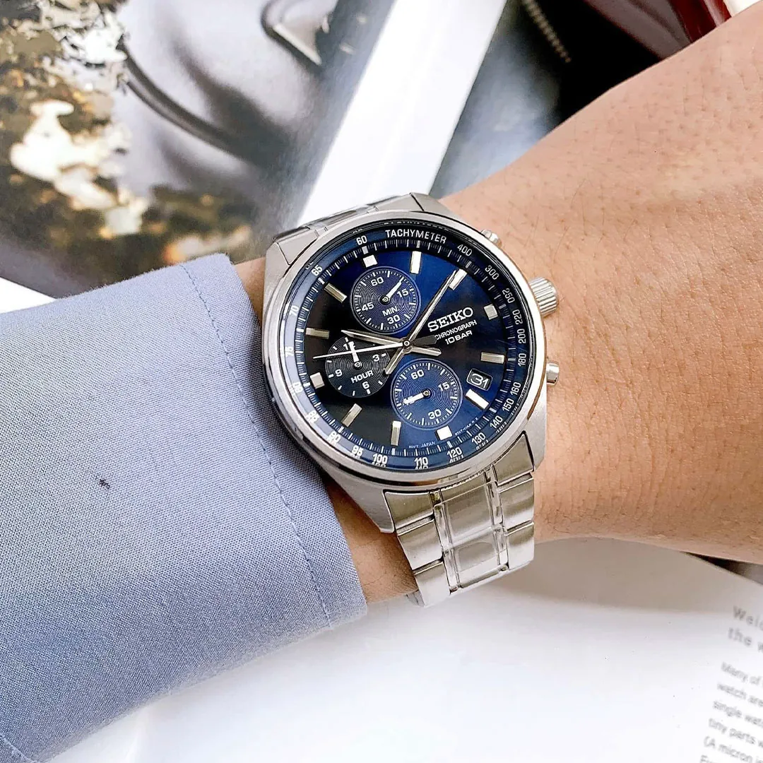 ساعت سیکو مدل SSB377P1 با طراحی اسپرت و صفحه آبی، ترکیبی از عملکرد و زیبایی را ارائه میدهد. کرونوگراف دقیق، تاچیمتر، و عقربه ثانیه کوچک، آن را برای استفاده روزمره و رسمی مناسب کردهاند. قاب استیل با شیشه هاردلکس و مقاومت بالا در برابر آب، دوام و دقت این مدل را تضمین میکند.
