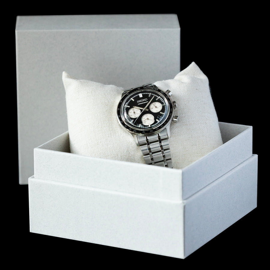 ساعت سیکو مدل SSB479P با طراحی اسپرت و صفحه مشکی، ترکیبی از عملکرد و زیبایی را ارائه میدهد. کرونوگراف دقیق، تاچیمتر، و عقربه 24 ساعته، آن را برای استفاده روزمره و رسمی مناسب کردهاند. قاب استیل با شیشه هاردلکس و مقاومت مغناطیسی بالا، دوام و دقت این مدل را تضمین میکند.