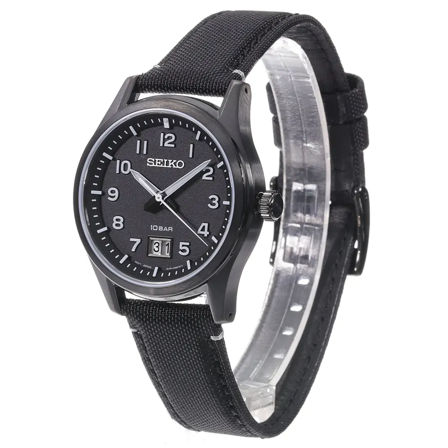 ساعت سیکو مدل SUR571P1 با طراحی مشکی مینیمال، بند نایلونی سبک و قاب استیل با پوشش سخت، گزینهای عالی برای استفاده روزمره و فعالیتهای فضای باز است. شیشه یاقوت ضد خش، مقاومت بالا در برابر آب و مغناطیس، و عقربههای شبنما، این مدل را به ترکیبی از دوام، دقت و زیبایی تبدیل کردهاند.