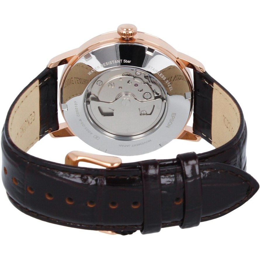 این ساعت از مجموعه Bambino Version 1 برند اورینت ژاپن، با طراحی مینیمال و مدرن، انتخابی ایده‌آل برای مردانی است که به دنبال ترکیبی از سادگی، دقت و زیبایی هستند. صفحه مشکی با نشانگرهای میله‌ای نقره‌ای و عقربه‌های باریک، خوانایی عالی و زیبایی چشمگیری ایجاد می‌کند. موتور اتوماتیک ژاپنی کالیبر F6724 با قابلیت کوک خودکار و دستی، عملکردی بی‌نقص را تضمین میکند. این ساعت با طراحی جمع و جور خود، برای استفاده روزمره و مناسبت‌های نیمه رسمی ایده‌آل است.