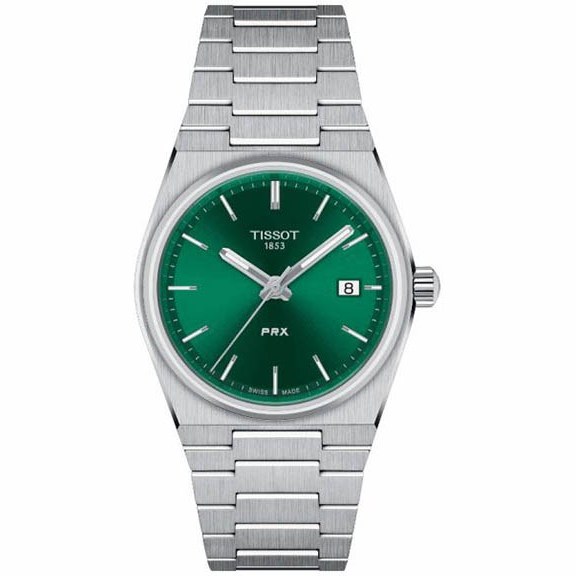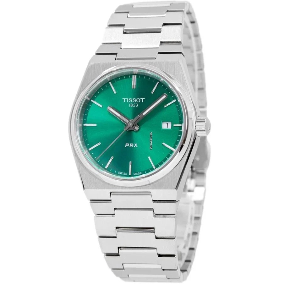 ساعت تیسوت مدل T1374101109100 از سری PRX، ترکیبی بینقص از طراحی دهه ۷۰ میلادی و رنگ سبز مدرن است. این مدل با صفحه سبز آفتابگردان، قاب باریک و بند استیل یکپارچه، انتخابی خاص برای آقایانی است که به دنبال استایلی متمایز، مینیمال و در عین حال لوکس هستند.
