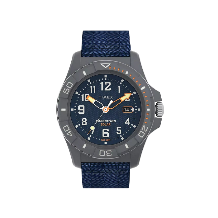 ساعت عقربه ای تایمکس مدل TW2V40300 از سری Expedition Freedive Ocean، با طراحی الهامگرفته از غواصی و تمرکز بر پایداری محیطزیستی، انتخابی عالی برای آقایانیست که به سبک زندگی فعال، طبیعتگردی و استفاده روزمره علاقه دارند. قاب آبی و بند پارچهای این مدل از پلاستیکهای بازیافتی اقیانوسی (#tide) ساخته شدهاند و حرکت خورشیدی آن تا 4 ماه بدون نور مستقیم دوام دارد. طراحی مقاوم با قاب 46 میلیمتری، حاشیه چرخشی یکطرفه و محافظ آن، این ساعت را برای شرایط سخت و ماجراجوییهای بیرونی مناسب کرده است.