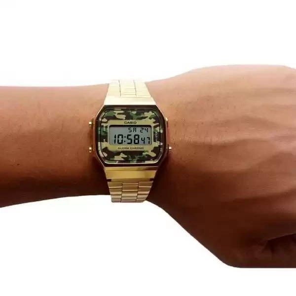 ساعت مچی دیجیتال کوارتز کاسیو مدل A168WEGC-3DF یکی از مدل‌های خاص و جذاب از سری Vintage برند کاسیو است که با ترکیب طراحی کلاسیک دهه ۸۰ و رنگ‌بندی مدرن سبز متالیک و طلایی، یک انتخاب شیک و متفاوت برای استایل‌های روزمره و نیمه‌رسمی به شمار می‌آید. این ساعت علاوه بر ظاهر خاص، امکاناتی مانند آلارم روزانه، کرنومتر دقیق، نور LED برای نمایشگر و تقویم خودکار را نیز در اختیار شما قرار می‌دهد.