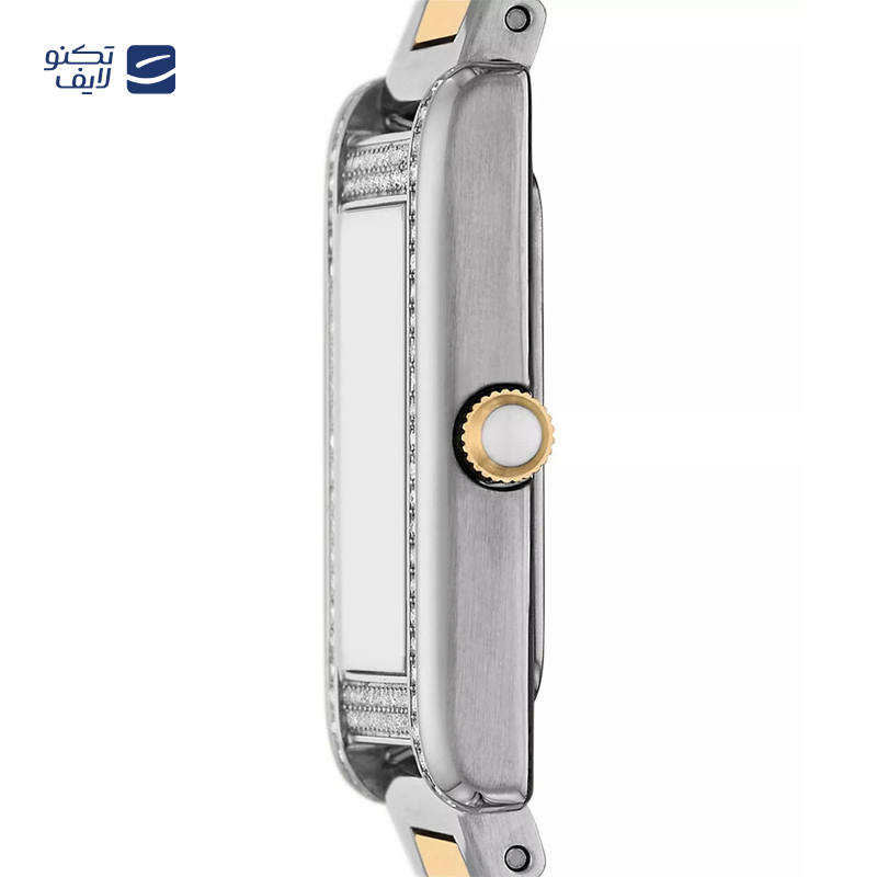 بند دوپرده طلایی و نقرهای: ساختار بند از استیل ضدزنگ با پوشش IP دوپرده طلایی-نقرهای ساخته شده که امکان هماهنگی با انواع استایل و جواهرات را فراهم میکند.