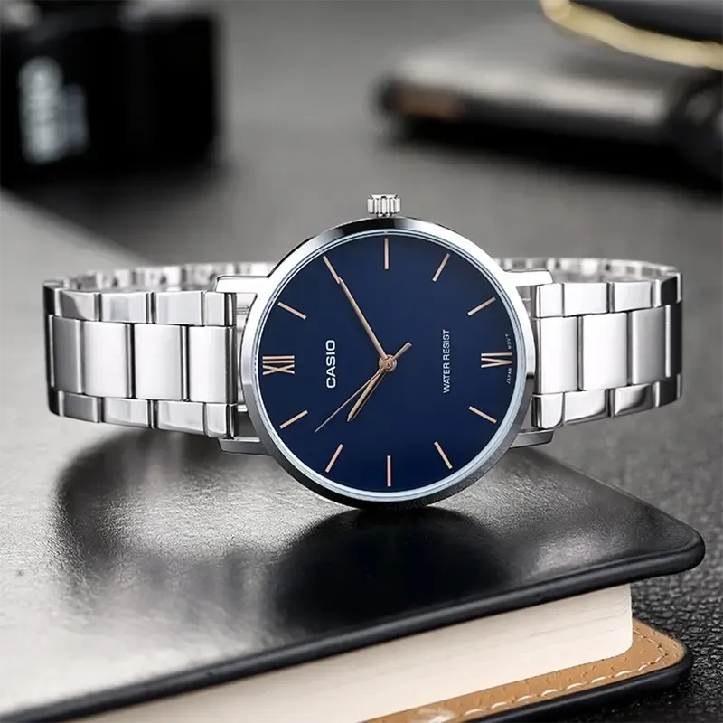 ساعت زنانه عقربهای کاسیو مدل LTP-VT01D-2BUDF با طراحی ساده و مینیمال، ترکیب بند استیل نقرهای و صفحه سرمهای، انتخابی شیک و کاربردی برای خانمهایی است که به دنبال ساعت ظریف، سبک و قابلاعتماد هستند. این مدل با فرم صفحه گرد، موتور کوارتز دقیق و مقاومت در برابر آب، برای استفاده روزمره، محیطهای کاری و استایلهای رسمی بسیار مناسب است. طراحی تمیز و خوانا، آن را به گزینهای محبوب در میان ساعتهای اقتصادی کاسیو تبدیل کرده است.