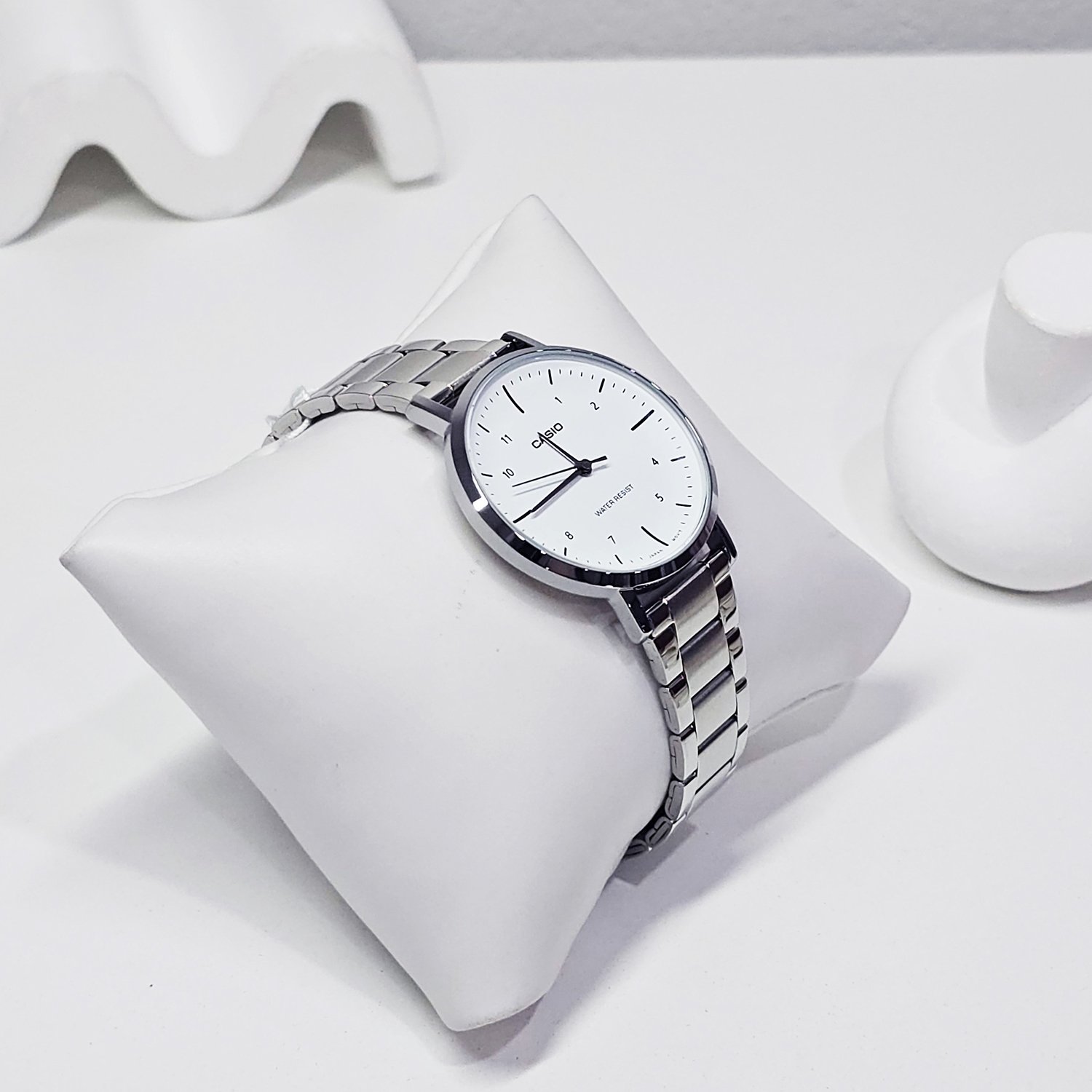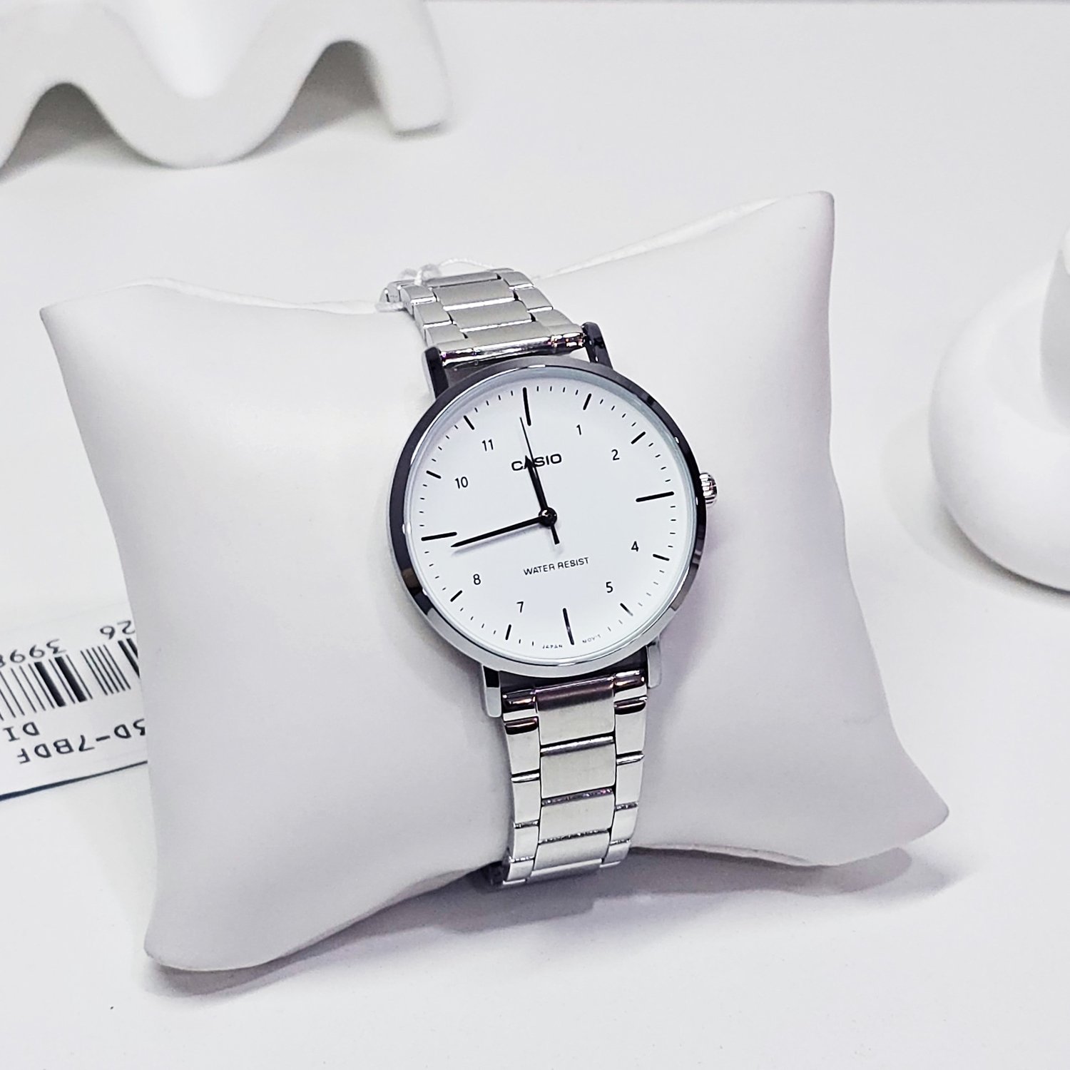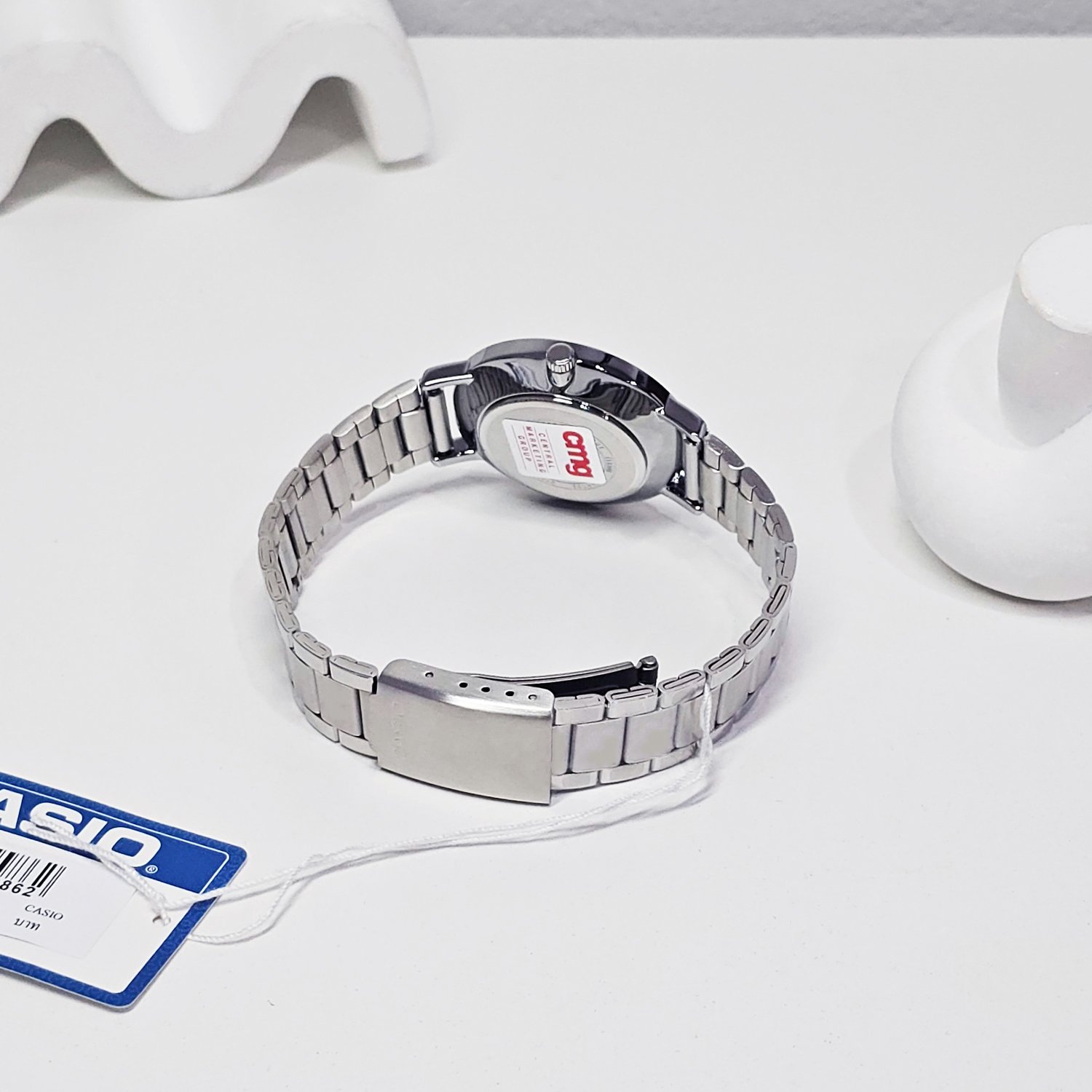 ساعت زنانه عقربهای کاسیو مدل LTP-VT03D-7B با طراحی مینیمال، بند استیل نقرهای و صفحه سفید، انتخابی شیک و سبک برای خانمهایی است که به دنبال ساعت ساده، خوانا و قابلاعتماد هستند. این مدل با فرم صفحه گرد، اعداد رومی در موقعیتهای ۱۲ و ۶، و موتور کوارتز دقیق، برای استفاده روزمره، محیطهای کاری و استایلهای رسمی بسیار مناسب است. طراحی تمیز و کلاسیک آن، این ساعت را به گزینهای محبوب در میان مدلهای اقتصادی کاسیو تبدیل کرده است.