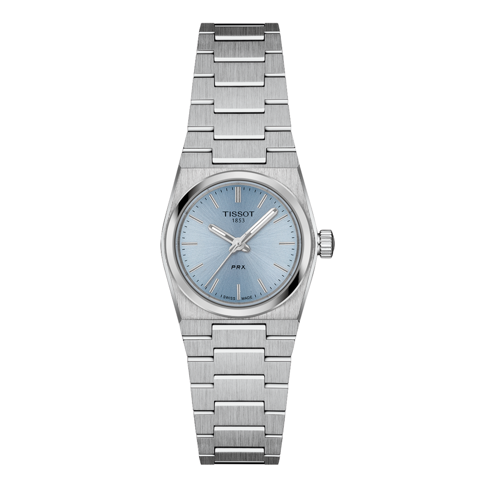 ساعت مچی عقربهای زنانه تیسوت Tissot مدل T1370101135100 از سری PRX با قطر 25 میلیمتر، ترکیبی از طراحی مینیمال دهه ۷۰ و کیفیت مدرن سوئیسی است. صفحه آبی یخی با جلوه آفتابگردان، قاب استیل صیقلی و بند یکپارچه، ظاهری شیک و امروزی به این مدل میبخشند. موتور کوارتز دقیق با نشانگر پایان عمر باتری، شیشه یاقوت ضد خش و مقاومت در برابر آب تا 100 متر، این ساعت را به انتخابی ایدهآل برای استفاده روزمره و رسمی تبدیل کردهاند