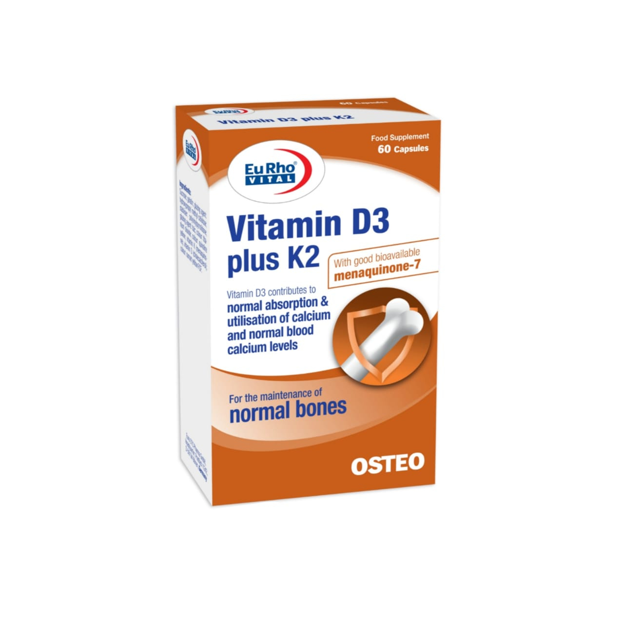 کپسول آهستهرهش ویتامین D3 پلاس K2 یوروویتال مکملی مناسب جهت پیشگیری و کمک به درمان پوکی استخوان است که خطر رسوب کلسیم در عروق خونی را کاهش میدهد.